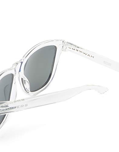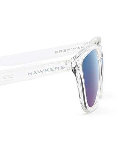 - Icónico modelo Hawkers One TR90, Unisex, con montura transparente y lente azul con efecto espejo