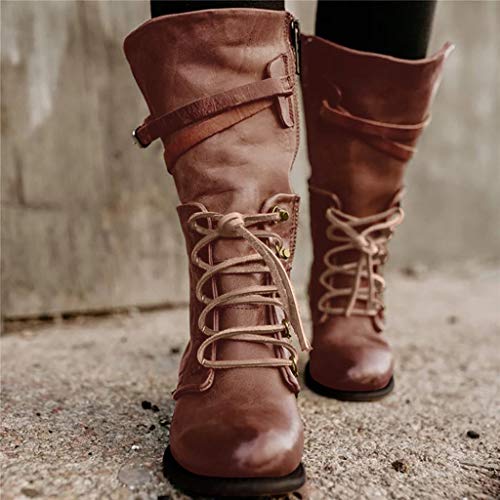 Posional Botas Retro Mujer Navidad Vintage Zapatos Planos de Cuero con Cremallera y Punta Redonda para Ladies Botas Nuevas con Soporte de Arco Piel Impermeable de la Nieve del Invierno