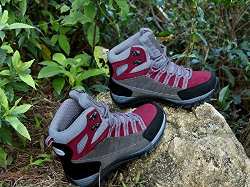 riemot Botas de Senderismo y Campo para Mujer Hombre, Zapatillas Altas de Trekking Zapatos de Montaña Escalada Aire Libre Calzado Impermeable Ligero Antideslizantes Sneakers, Fucsia EU 41