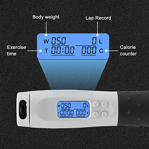 - ➤Detalles del Producto - Mango de silicona antideslizante para un agarre óptimo y cómodo, diseñado para reducir la fatiga de la mano durante los entrenamientos largos. La cuerda larga tiene una longitud de 118", la cuerda corta de 11.8" y el mango es de 7,1". Además, el paquete incluye destornillador y batería.