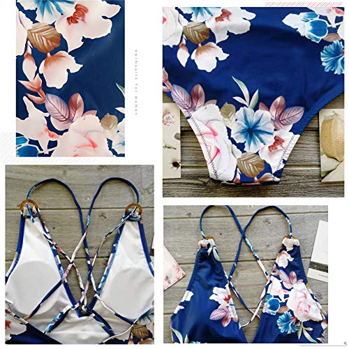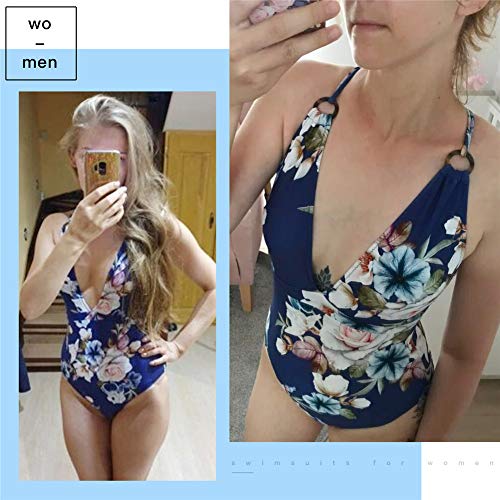 SEDEX BaƱadores Mujer Trajes de BaƱo Una Pieza Retro Flor Push Up Escote en V Profundo Cuello Halter Elegante Monokini BaƱador Natacion Reductor Tankini Ropa de BaƱo con Relleno, XXL
