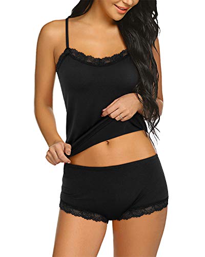S-ZONE Conjuntos de Pijamas para Mujer Camisola de Encaje y Pantalones Cortos Conjunto de Lencería Básica Simple y Sexy Ropa de Dormir Delgada y Bragas
