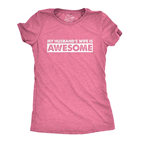 Crazy Dog Tshirts - Women's My Husband's Wife Is Awesome T Shirt Funny Valentines Day tee For Women (Pink) - L - Camiseta para Mujer