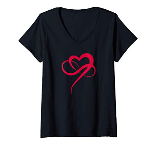 Mujer Amor infinito - Corazón rojo con el signo del infinito Camiseta Cuello V