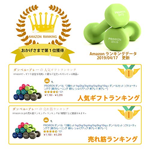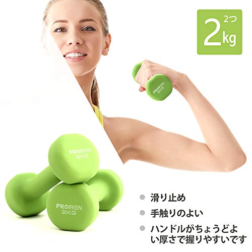 PROIRON Mancuernas de Neopreno -Mancuernas con Revestimiento de Neopreno 2 x 2 kg