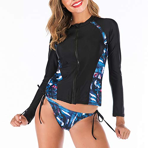 KX-YF Traje de Surf Damas patrón de Surf Traje de baño de Dos Piezas Traje de baño con Unique Chic and Manga Larga Rash Guard Negro Traje de Surf Conjunto de Las Mujeres (Color : Black, Size : XXL)