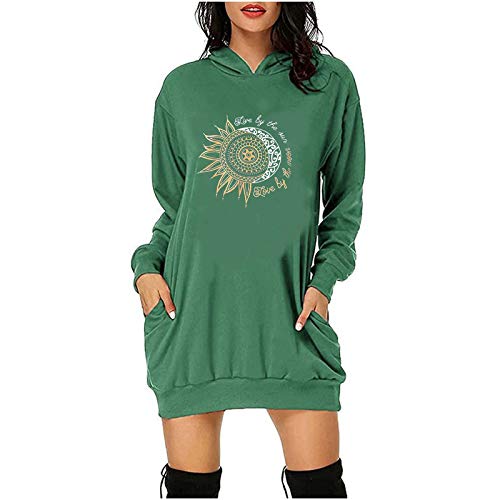 BuckerLer Sudadera para Mujer Moda de Manga Larga con Cuello Redondo Estampado de Sol, Jersey Informal de Primavera y Otoño para Mujer Vestido de Mujer Barato Blusa Abrigo Deportivo (Verde, M)