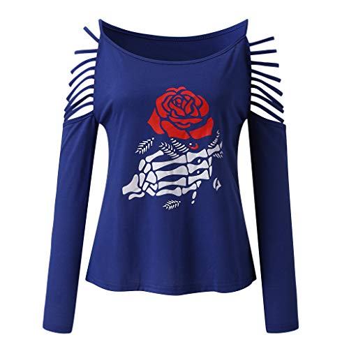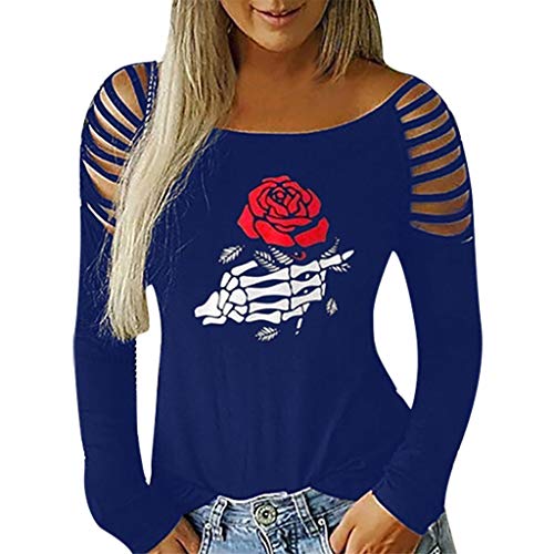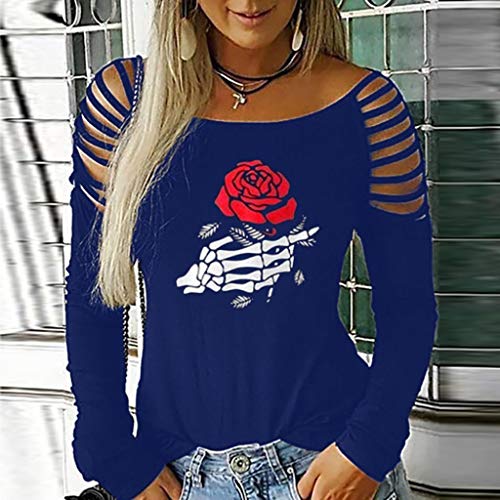 BuckerLer Sudadera para Mujer Moda Manga Larga Cuello Redondo Estampado de Rosas Hombro Frío, Mujer Casual Primavera Otoño Pullover Vestido de Mujer Barato Blusa Abrigo Deportivo (Azul, XXXL)
