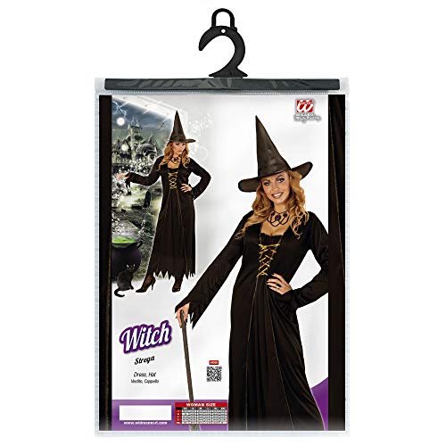 WIDMANN 21435-Disfraz de bruja (vestido largo y sombrero, talla XXXL), negro y dorado, color, xxx-large (21435)