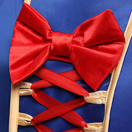 - ✤ Blancanieves trajes de disfraces con una capa, vestido de traje de cosplay de carnaval adornado con cintas lindas bowknot, azul satén de la blusa con mangas casquillo rojo y azul, hilo dorado para resaltar el exquisito vestido, cierre de cremallera, capa extraíble de satén rojo, flor de lentejuelas en el dobladillo de la falda.