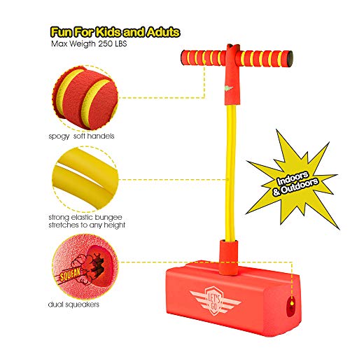 - Diversión sin fin: el saltador de espuma pogo es un juguete divertido y emocionante que tiene un adorable chirrido incluido en la base, puede hacer un sonido divertido con cada salto. ¡Es aún más divertido para tus hijos! ¡Así que sus hijos estarán activos durante horas y nunca se detendrán a saltar! ¡Salto! ¡Salto!