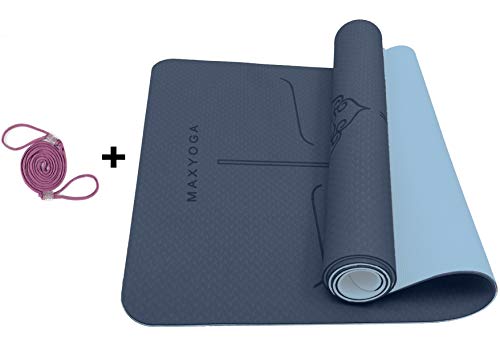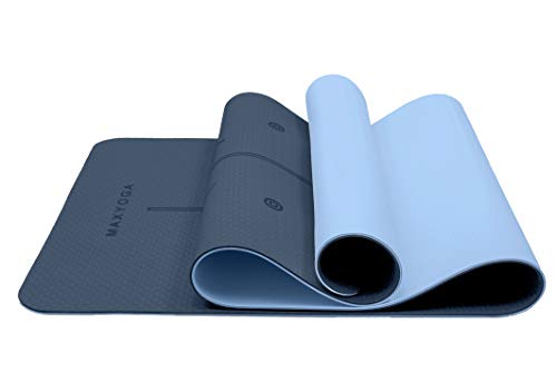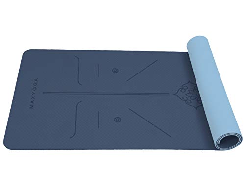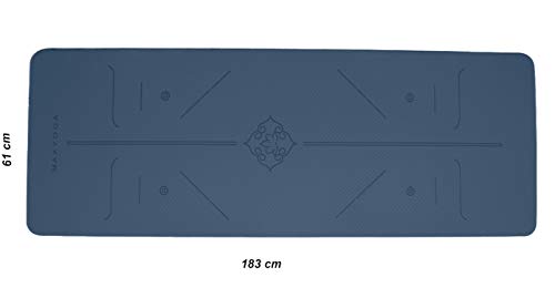 MAXYOGA® MaxDirect Esterilla Yoga con Sistema de Alineación y Marcados. Colchoneta Yoga Mat Antideslizante y Ligera de Material Ecológico TPE. Tamaño Ideal 183cm x 61cm x 6mm. - Azul