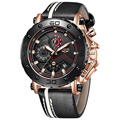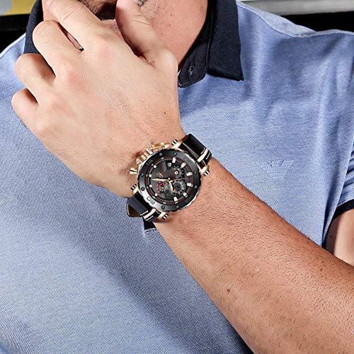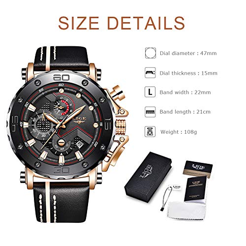 - ?Diseño multifuncional: dial analógico de gran tamaño con manecillas y agujas Mark Hour, cronógrafo multifunción con tres contadores para segundos, minutos y horas, con pantalla analógica y fecha. Gran regalo para aniversario, navidad, familia, pareja o amigos.