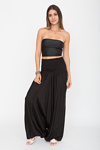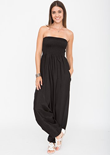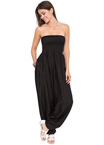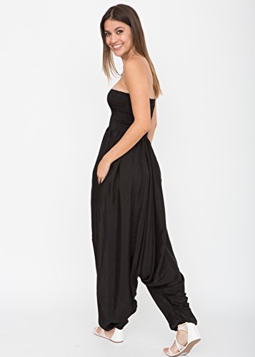likemary Mono con pantalón Afgano Largo imitación Seda Negro