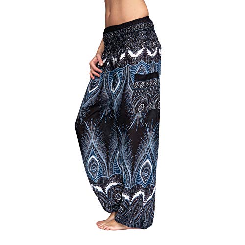 Mienloco Pantalones harén para mujer, diseño de pavo real Negro Talla única