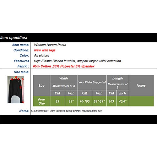 - TAMAÑO PANTALONES CAGADOS MUJER DE VESTIR: Los pantalones hippies mujer son disponibles en las tallas S/M, L/XL y XXL con un perfecto agarre mediante un cinturón de elástico
