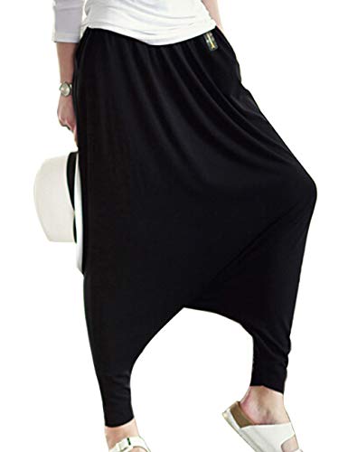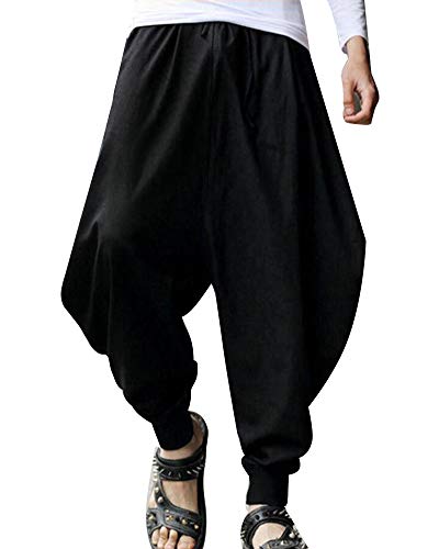 Shaoyao Pantalones Largos para Hombres Harem Holgados Pantalón De Hippie Boho Negro L