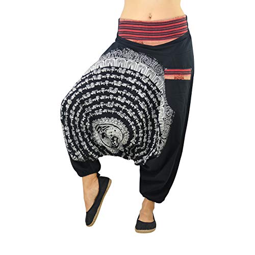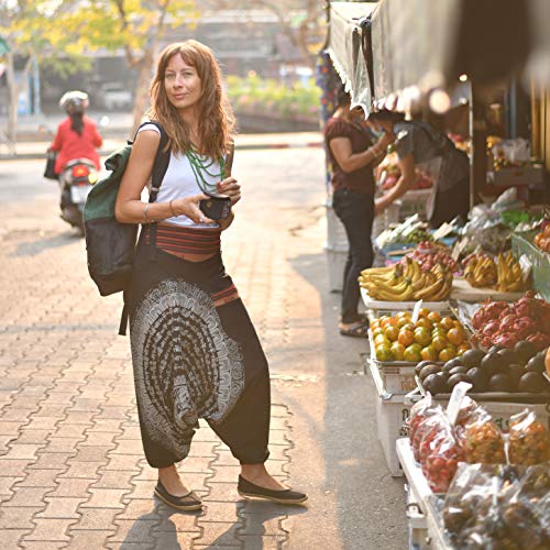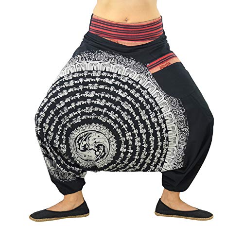 - CARACTERISTICAS PANTALONES YOGA MUJER: Los pantalones bombachos mujer chandal son tradicionales con diseño personalizado, un mandala con significado espiritual, estampado de alta calidad y decorado con patrón tejido a mano de tribus Naga de montañas asiáticas