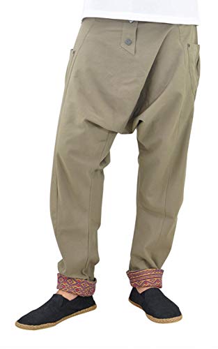 - CARACTERISTICAS PANTALONES ANCHOS: Los baggy mujer son pantalones chandal para hombres que tienen una fuerte cintura elástica, fila de botones de metal de aspecto antiguo (extra botón incluido) 2 bolsillos laterales; los pantalones pueden ser ajustados de largo al doblar, el interior está decorado con tejidos asiáticos