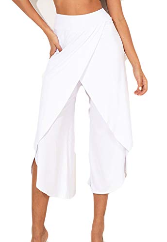 Cayuan Mujer Pantalones Bombachos Harem Pantalón Polainas Holgados Yoga Pilates Pantalones de Modal Blanco