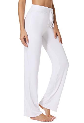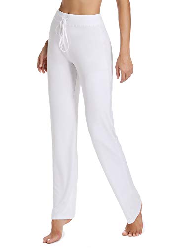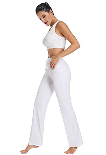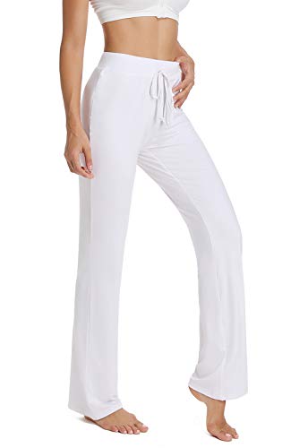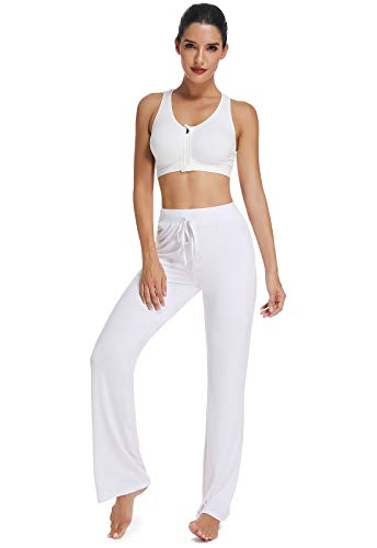 FITTOO Pantalones De Yoga Sueltos Cintura Alta Mujer Pantalones Largos Deportivos Suaves y Cómodos1080#4 Blanco M