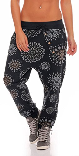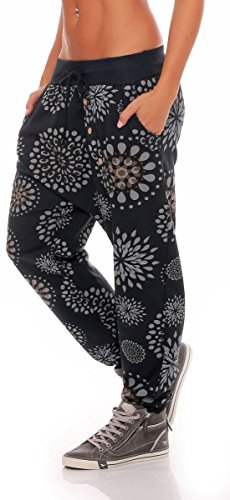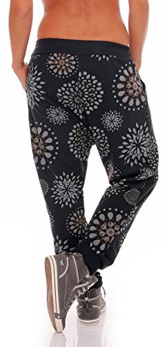 Malito Pantalón Boyfriend con Flores Print Baggy Aladin Bombacho Sudadera 3381 Mujer Talla Única (Negro)