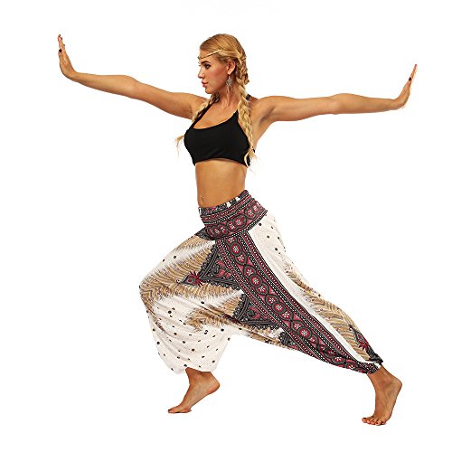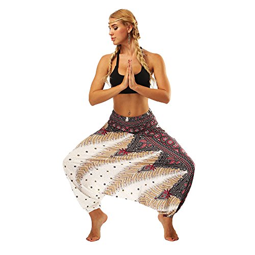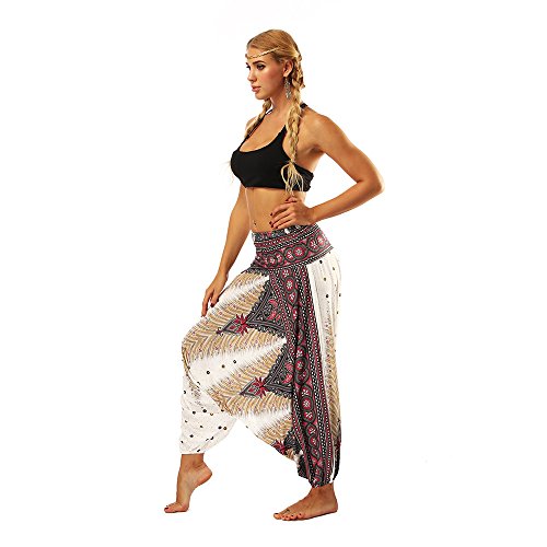 STRIR Jumpsuit Pantalones Harem de Cintura Smocked del Pavo Real para Mujeres Mujer Pantalones Harén Boho Pantalón Bombacho Harem Pantalones Baggy Yoga (Blanco)