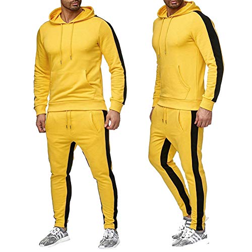 amropi Conjunto de Chandal Jogging para Hombre Sudaderas con Capucha y Pantalones 2 Piezas XL,Amarillo