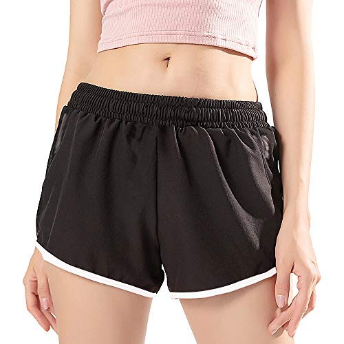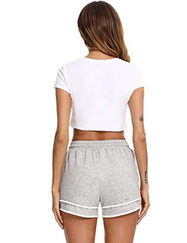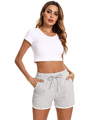 Doaraha Pantalones Cortos Mujer Deporte Algodón Cintura Elástica Ajustable Pantalon Deportivo Corto con Bolsillos Verano Shorts Pantalones Deportes Suave Transpirable