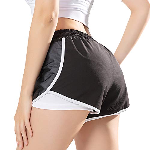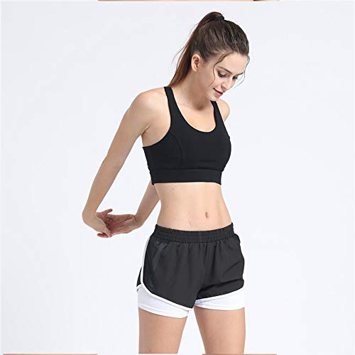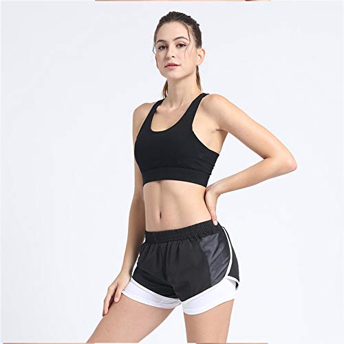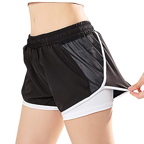 Pantalones cortos deportivos 2 en 1 para mujer Pantalones cortos elásticos de doble capa para correr (Blanco, S)