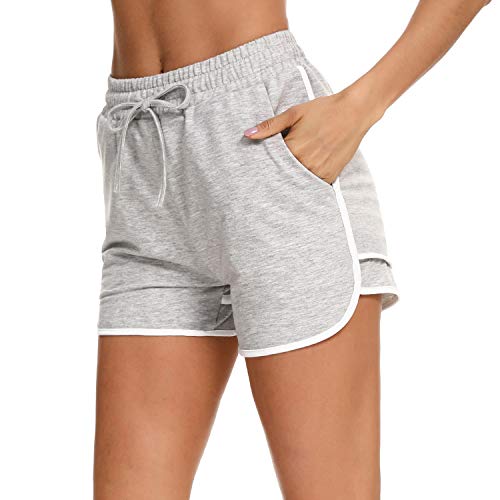 Doaraha Pantalones Cortos Mujer Deporte Algodón Cintura Elástica Ajustable Pantalon Deportivo Corto con Bolsillos Verano Shorts Pantalones Deportes Suave Transpirable