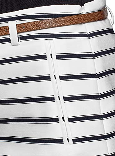 oodji Ultra Mujer Pantalón Corto de Algodón con Cinturón, Blanco, ES 36 / XS