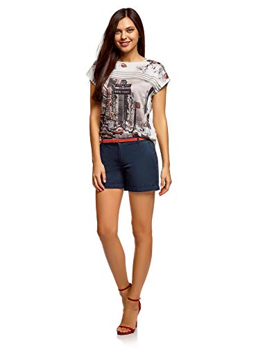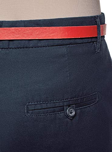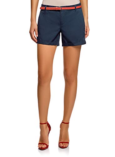 oodji Ultra Mujer Pantalones Cortos de Algodón con Cinturón, Azul, XXS
