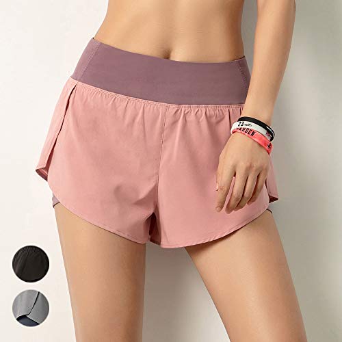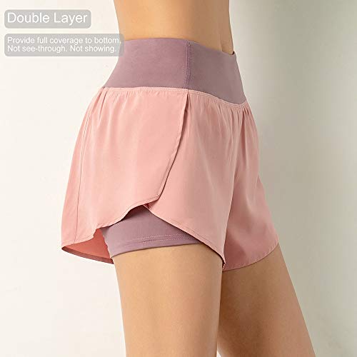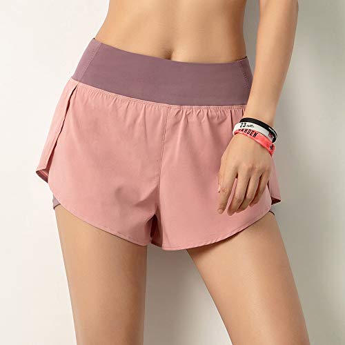 donhobo Pantalones cortos de deporte para mujer, de verano, 2 en 1, de secado rápido, para correr, fitness, yoga, jogging, entrenamiento Rosa. S