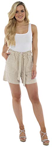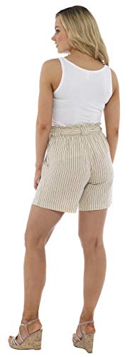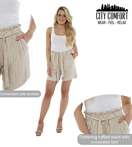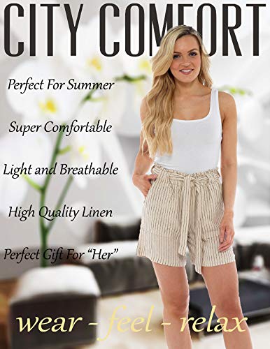 CityComfort Shorts de Lino para Mujer Mujeres Pantalones Cortos de Lino para el Verano, Vacaciones, Playa | Cintura de Bolsa de Papel de Moda (46, Rayas Beige)