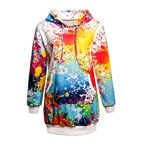 OverDose Sudadera Para Mujer Linda con Estampado De Arcoiris Rayas Sudadera con Capucha Informal NiñAs Abrigo Suelto Delgado Invierno Tendencia Tops Cortos Camisa De Fiesta con Capa
