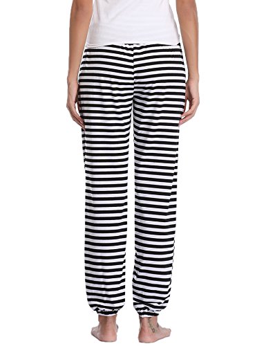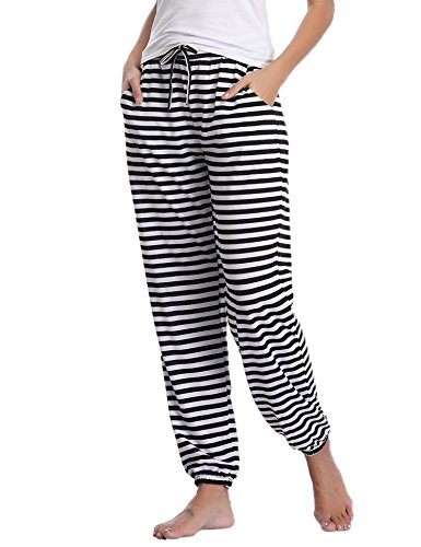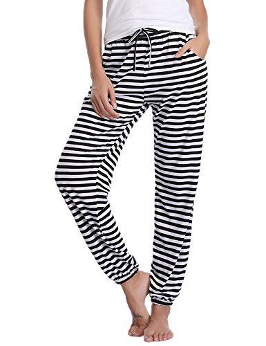 Hawiton Pantalones Deportivos para Mujer 100% Algodón Pantalón de Chándal con Bolsillos para Gimnasio Deportes Correr Entrenamiento Jogging Pantalones de Pijama Largos de Rayas