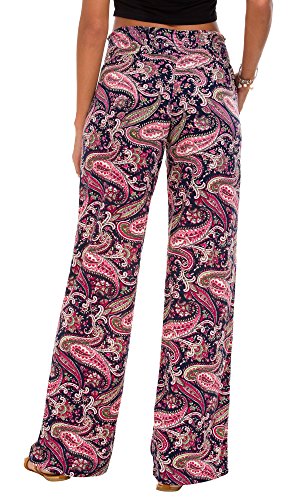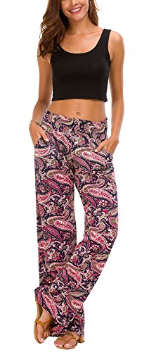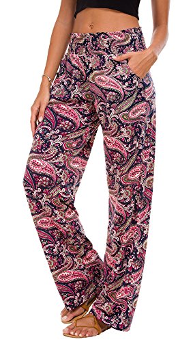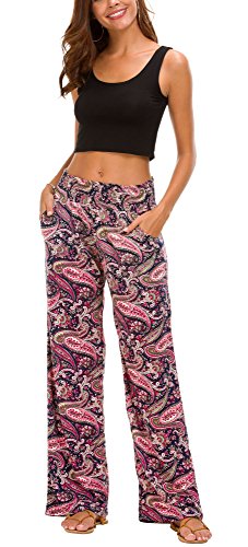 Urban GoCo Mujer Pantalón Palazzo de Pierna Ancha Casual Estampado Floral Baggy Pantalones (Large, 6)