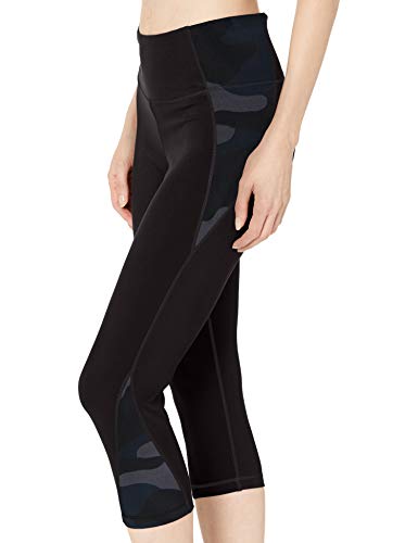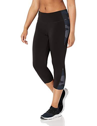 Amazon Essentials Colorblock Performance Mid-Rise Capri Legging Athletic-Leggings, Negro, Gris (Black/Grey Camo), S