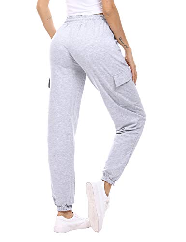 Doaraha Pantalones Deportivos Mujer Algodón Pantalón de Chándal Largo Elásticos Transpirables con Bolsillos Laterales para Deporte Gimnasio Fitness Correr (Gris Claro, S)