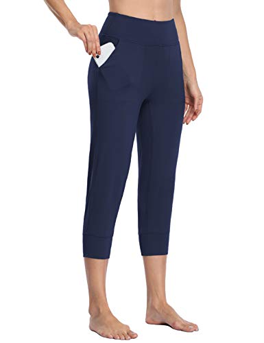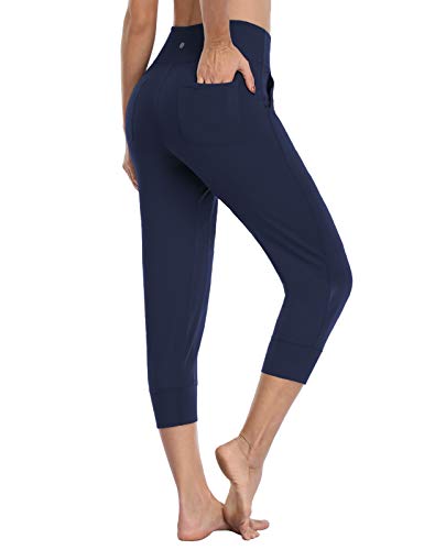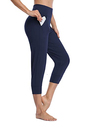 MOVE BEYOND Pantalones Piratas Capris de Deporte para Mujer con 4 Bolsillos Cintura Alta Jogger de Gimnasia Yoga, Azul, S
