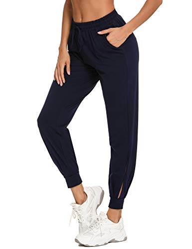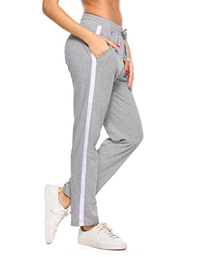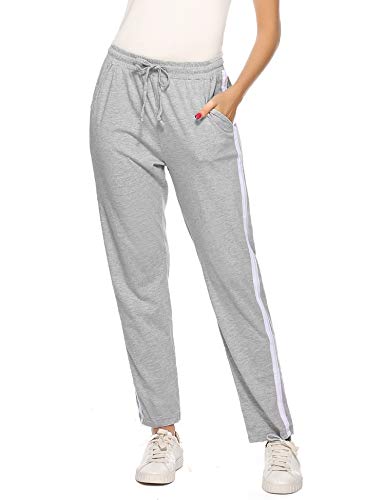 Aibrou 100% Algodón Pantalones Deportivos para Mujer Pantalones de Pijama Largos Primavera Verano Pantalón de Chándal con Bolsilpara Gimnasio Deportes Correr Jogging