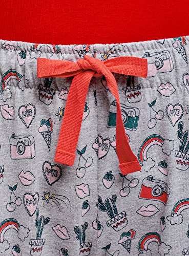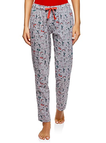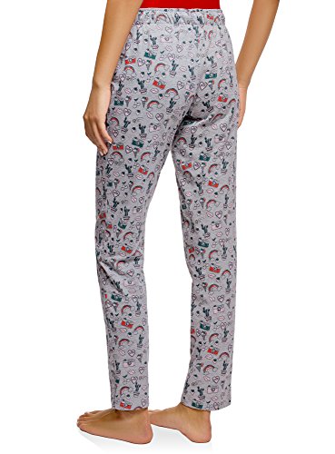 oodji Ultra Mujer Pantalones Estampados de Estar por Casa, Gris, ES 36 / XS