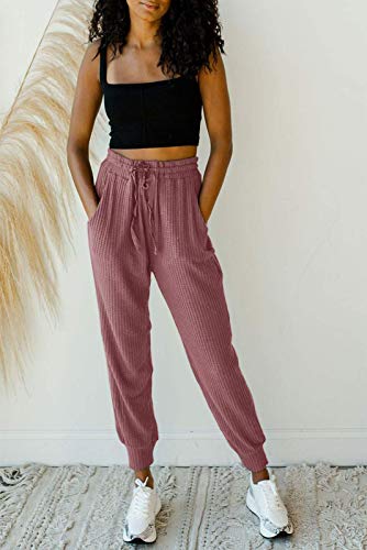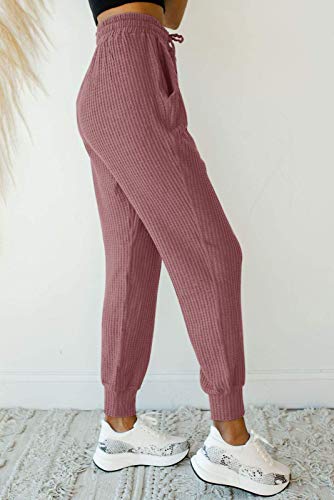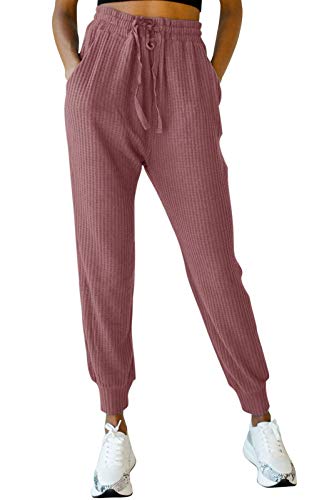 EVELIFE Ropa Deportivos Mujer Pantalones De Chándal con Bolsillo Chándal Suaves y Ligeros Pantalones De Jogger De Cintura Elástica con Cordón De Algodón(Rojo_M)