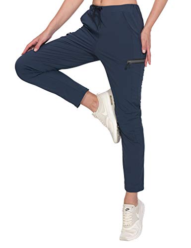 Little Donkey Andy Pantalones de tobillo ligeros de secado rápido para mujer, con cordón, para viajes, senderismo, M, A3. Azul marino