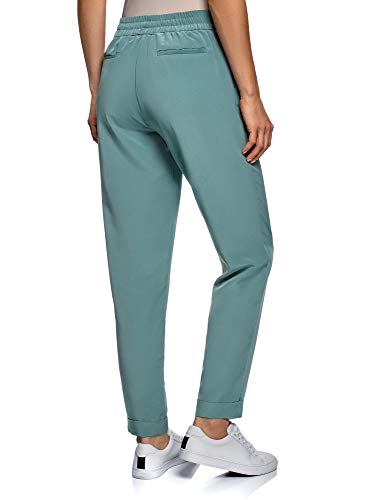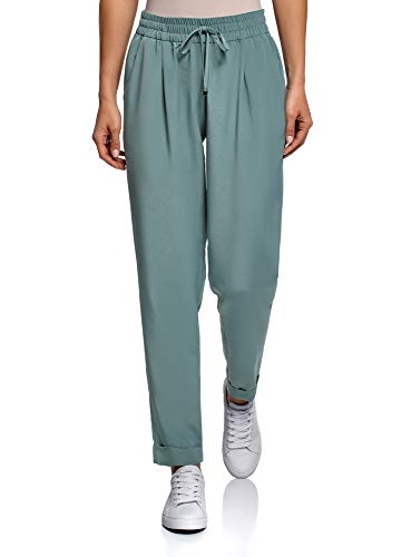 oodji Collection Mujer Pantalones Ligeros de Tejido Fluido, Azul, ES 40 / M
