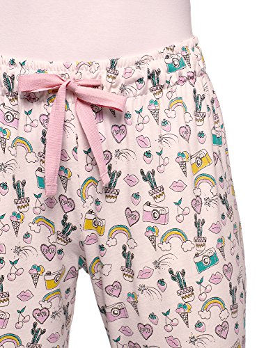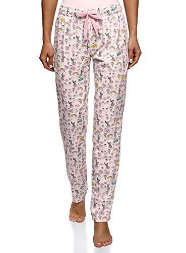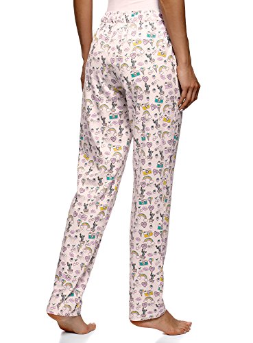 oodji Ultra Mujer Pantalones Estampados de Estar por Casa, Rosa, ES 40 / M