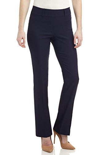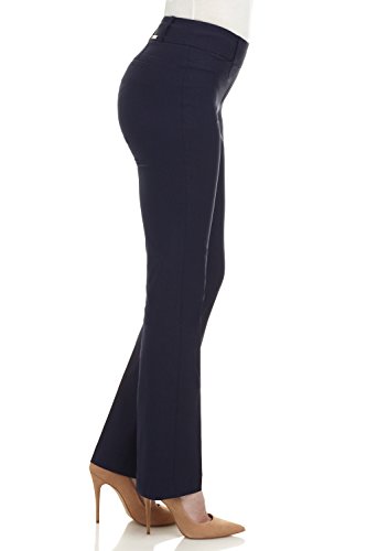 Rekucci Pantalon Siempre Comodo de Mujer Pantalon Ajustado Ligeramente Acampanado (4,Azul Marino)