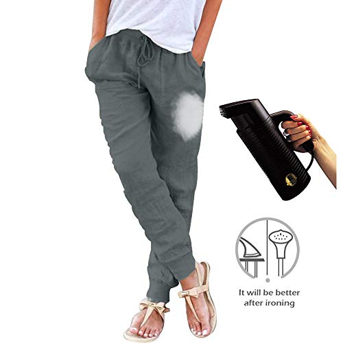 - Material: algodón + lino. Material agradable, opaco, agradable a la piel, elástico, transpirable, elegante, cómodo. Los pantalones de verano para mujer son muy cómodos de llevar. Debido al material de lino, es más fácil de plegar. Por favor, utiliza la plancha para planchar antes de usar.