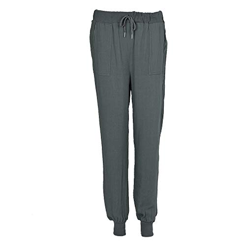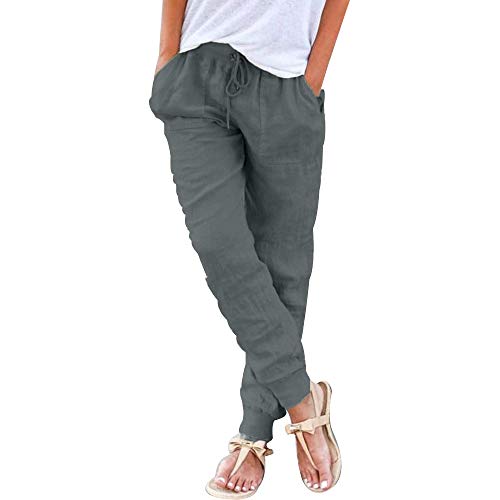 Shujin Pantalones de verano de algodón para mujer, ligeros, cómodos, sueltos, de un solo color, para correr, con cordón A verde militar. XL